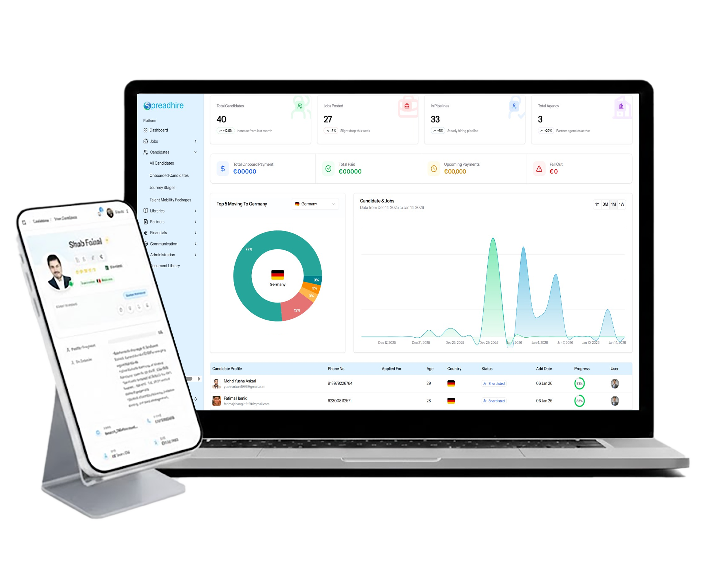 The Spreadhire Portal (“Portal,” “we,” “us,” “our,” or “Spreadhire”) is an online platform operated by Spreadhire S.R.L., providing a centralized, secure, and user-friendly environment for managing recruitments and facilitating talent mobility opportunities (the “Service”). Through the Portal, we connect users, including candidates and employers, through referral partners, and consultants (“Users”), to deliver an efficient, streamlined, and secure Service experience. The Service enables the movement of candidates or employees across roles, locations, and organizations to meet staffing needs, support skill development, and match individuals with suitable opportunities. Personal Data (as defined herein) may be collected directly from candidates or indirectly via referral partners or consultants and is subsequently verified by the relevant candidate or employer.